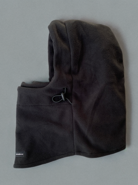 首元から頭まですっぽりと追ってくれるフリース素材のバラクラバ。身に付ければ防寒性が格段に
